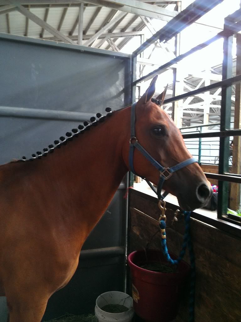 Aaron's man braids, a little rubbed up from turn out.
