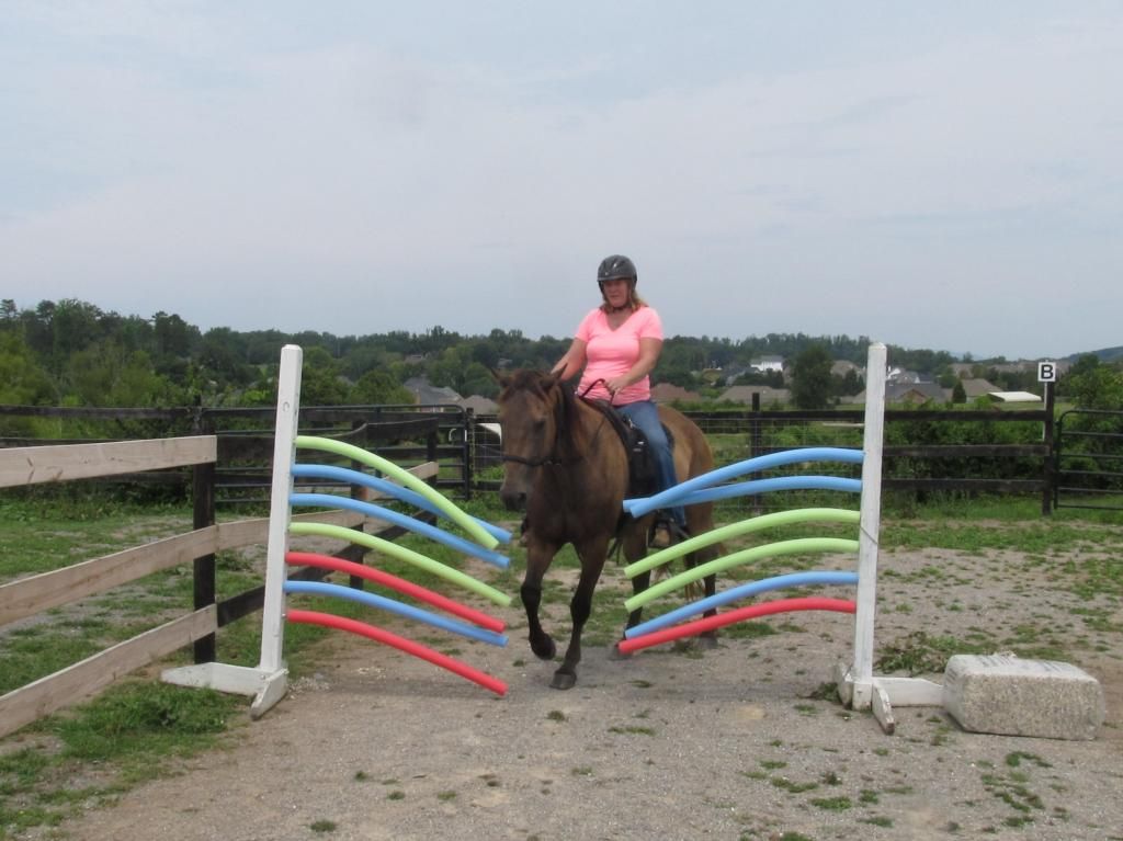 katyb - can you explain the 2nd picture? Looks like pool noodles on a jump standard? What do you peg them with, regular jump cup bolts? Looks like something new for my little guy to try while he's laid up.