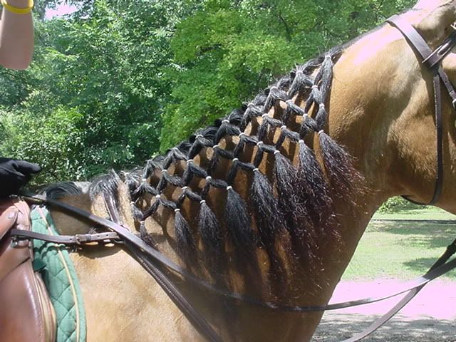 She also uses Braid-Ez (sp?) braiding wires with one mare who has a particularly thick, long mane.